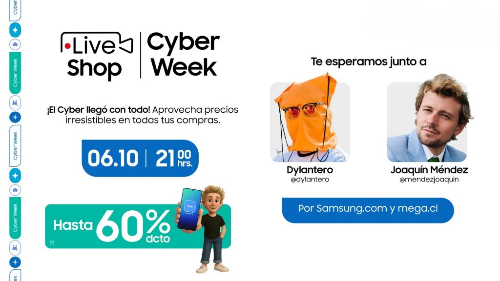 El Live Shop se transmitirá en Samsung.com, Mega.cl y en Instagram por @SamsungChile, conéctate y participa para ganar un Galaxy…